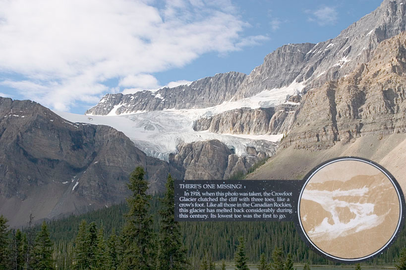 Crowfoot Glacier, about 25 miles north of Lake Louise. A sign at