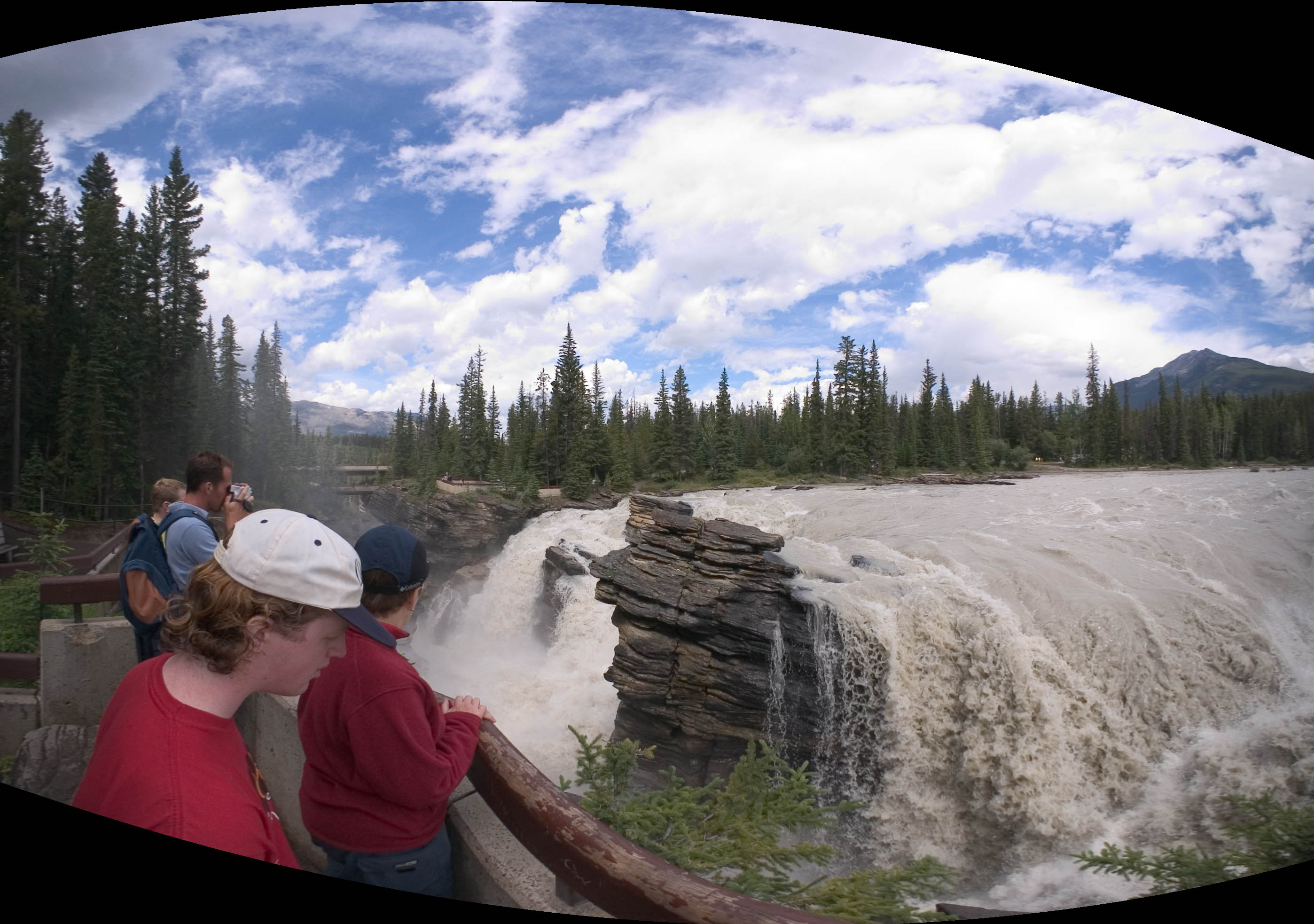 Here is a wideangle view of Athasbasca Falls, from the footbridge