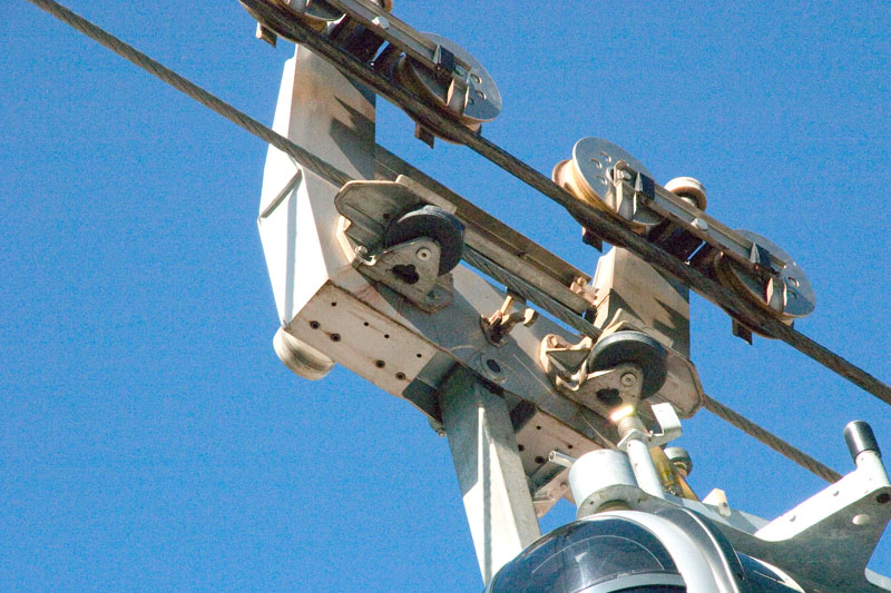 appears to me that the gondola rides on wheels on a fixed cable, while