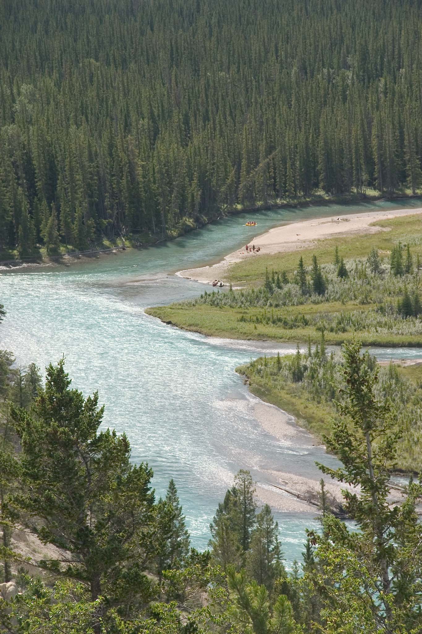 Closeup (telephoto) of this same spot of the Bow River.  When we were there, there were just enough rafts, canoes, and kayaks to make it interesting, not overcrowded.