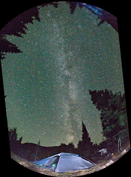 Milky Way over the tent around midnight. (5-minute time exposure.)