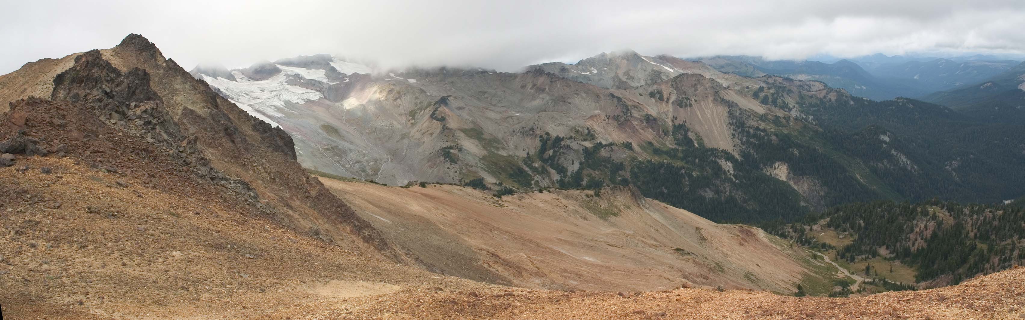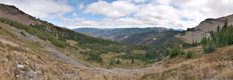 About two-thirds of a full circle panorama, on the hillside above camp.